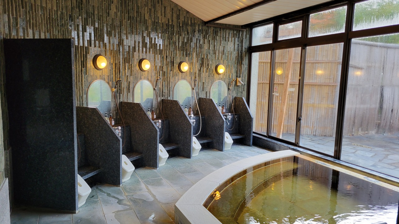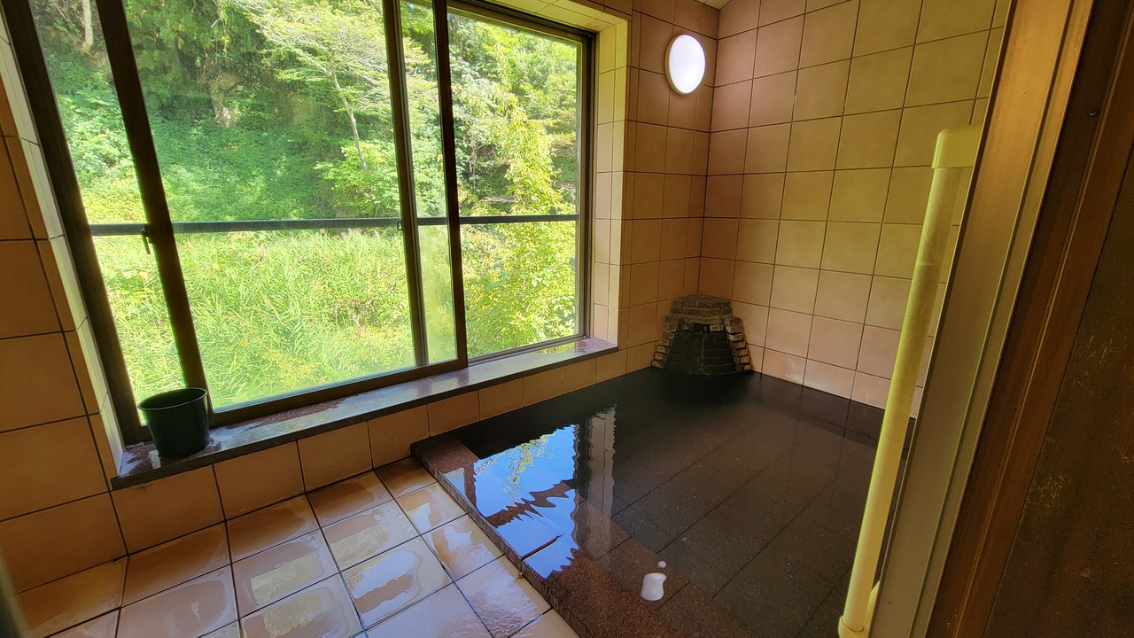 貸切風呂(源泉かけ流し)は、1時間利用可能。