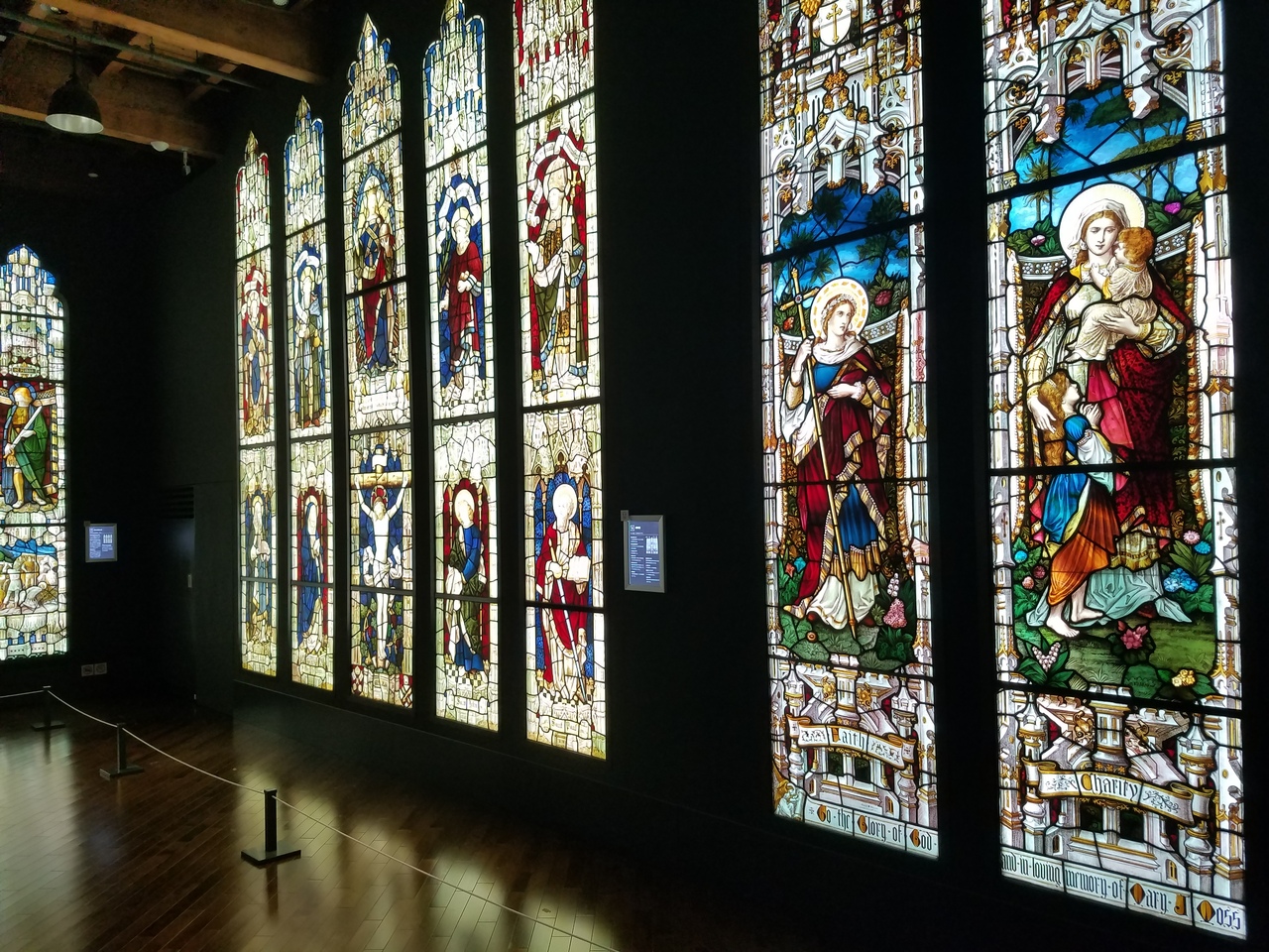 館内には19世紀後半から20世紀初頭にかけてイギリスで制作され、実際に向こうの教会に飾られていたものが展示されているそうです。
