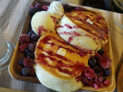 パンケーキは噂通りフワフワで美味しかったです。お会計のときに店員さんからサービスで林檎を2こ頂きました。- 旅行時期