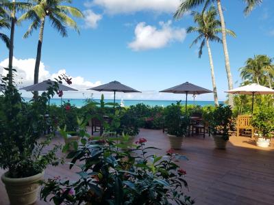 空調もちゃんと効きますし、お風呂もキレイでした。食事はイマイチかもしれませんが、私が一番気に入ったのは、プライベートビーチです。海の色がとっても鮮やかで綺麗でした。以前宿泊したアリビラのビーチより断然綺麗でした。建物も吹き抜け部分に長い植物が簾のようにかかっていて南国気分を味わえます。ぜひ、また泊まりたいです。- 旅行時期