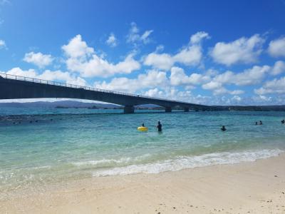 レンタカーを借りて古宇利大橋をドライブ。橋の上から見えるコバルトブルーの景色は爽快感があり最高の眺めでした。島自体はかなり小さいです。海水浴している人は少ないですが、たくさんの外国人観光客で賑わっていました。