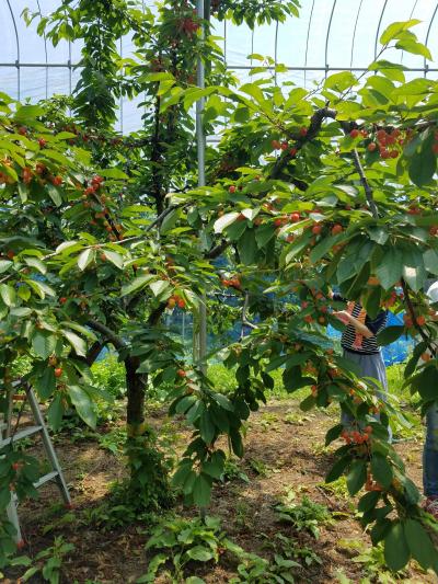私が体験した農園さんは、1時間食べ放題で1人1000円の入場料でした。たぶん、どこも金額は同じようなものだと思います。どれにしようかな、と悩んでると農園のおじさんが、はしごに登って美味しそうなさくらんぼを取ってくれたりします。子供連れで楽しめるのでオススメです。- 旅行時期