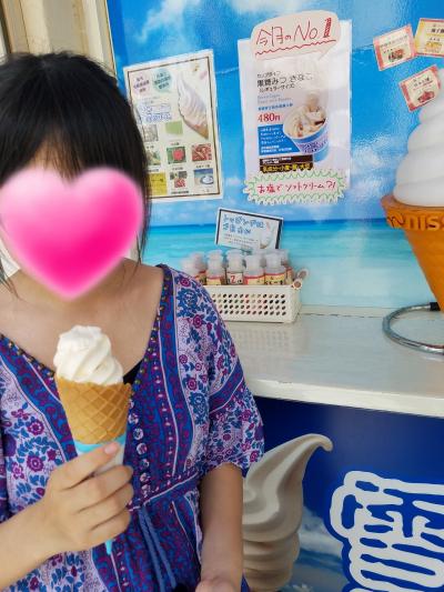 飛行機の時間まで国際通りをブラブラしていたら、雪塩ソフトクリームのお店を発見。娘いわく、沖縄旅行で食べたものの中で一番美味しいと絶賛していました(笑)暑い中、食べたので余計に美味しく感じたかもしれません。塩が入っているので、甘味が際立って美味しかったです。