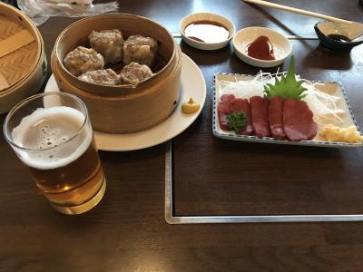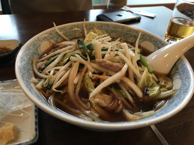 昔ながらの味の野菜ラーメンとかつ重、シュウマイ、馬刺し、もずく酢、ビー...