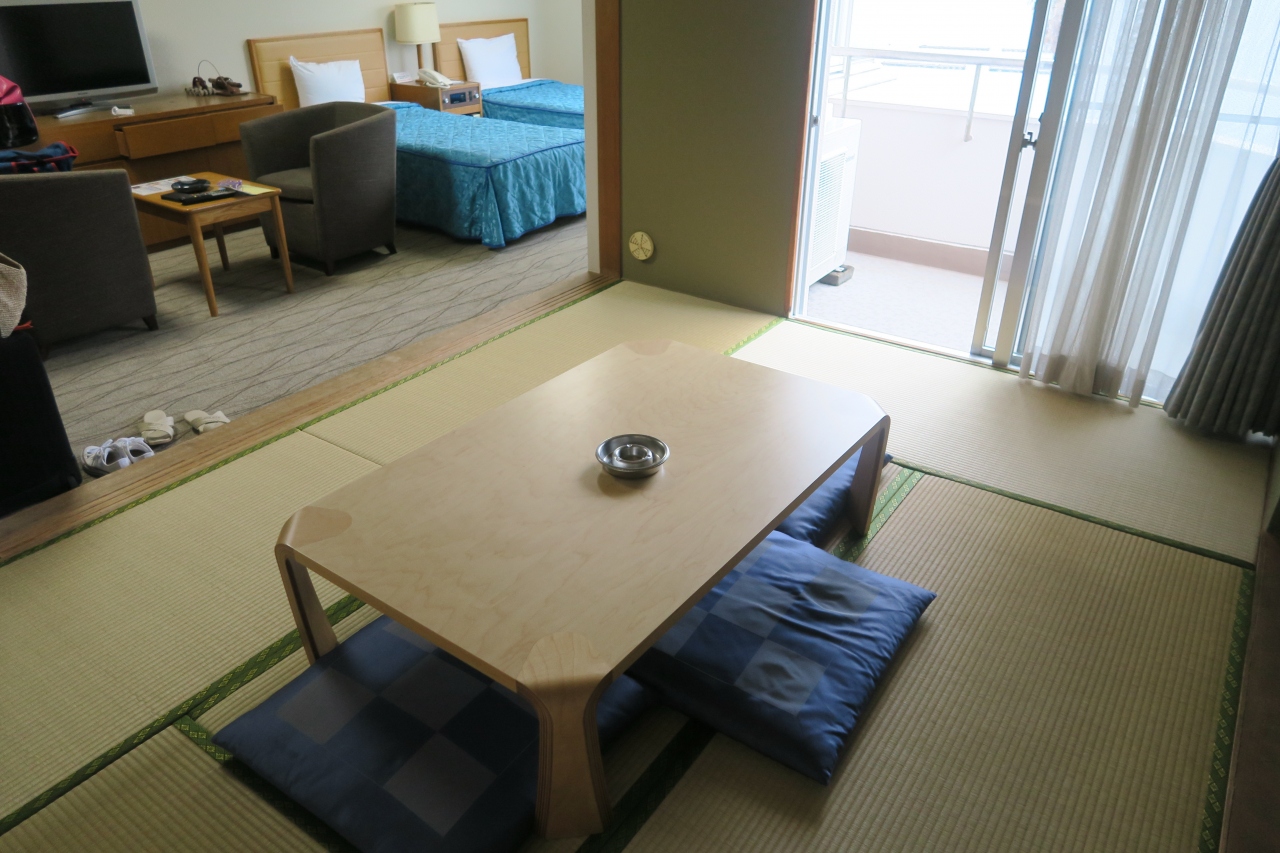部屋は二人で泊まるには十分な広さの和洋室、部屋からの眺めは抜群でした。