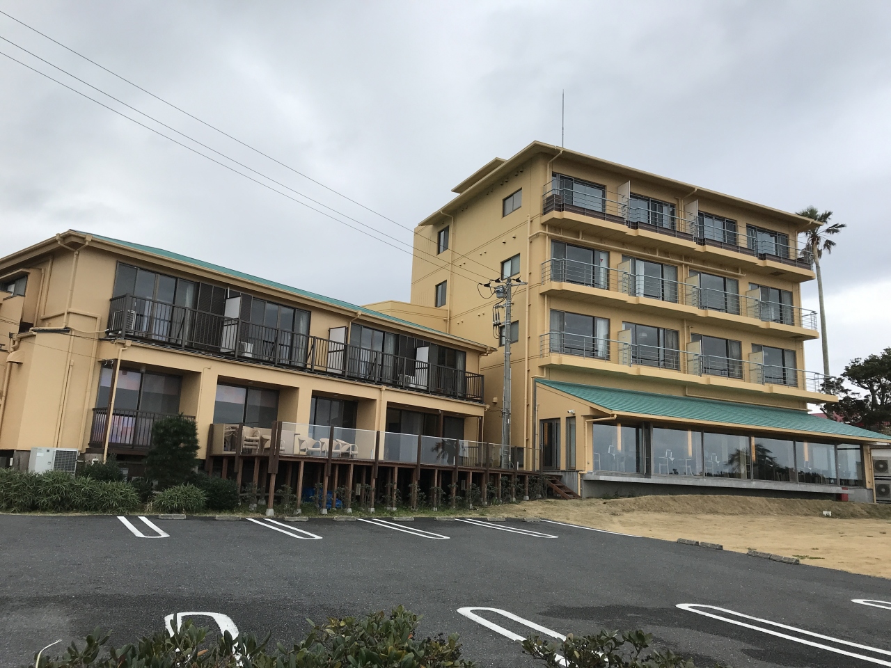 ホテルの目の前の駐車スペースは少なく、先着順です。