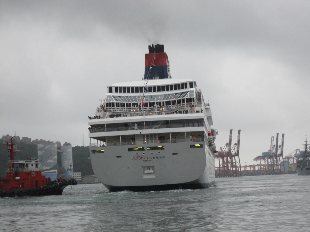 今回は、運よく、豪華客船が基隆に停泊しており、港から出て行くところを見ることが出来ました。