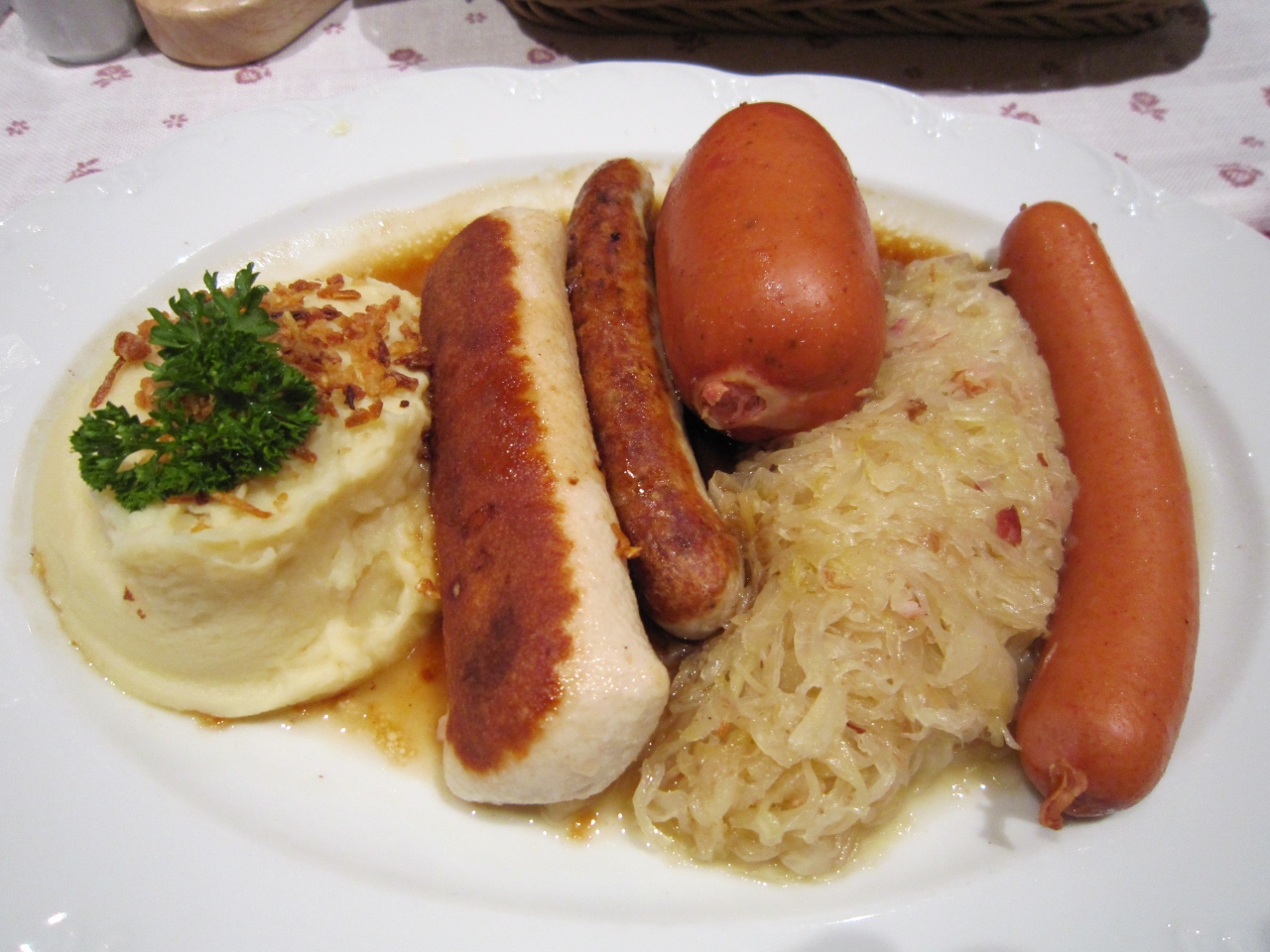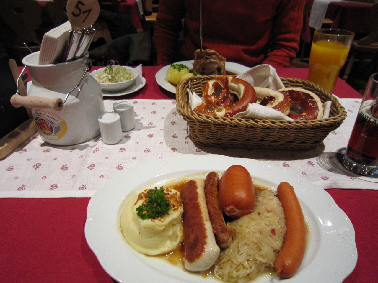 料理は、シュバイネ・ハクセとヴルストのサンプラーを中心に数点オーダーしました。オーダーに迷った場合、店員さんがアドバイスしてくれます。