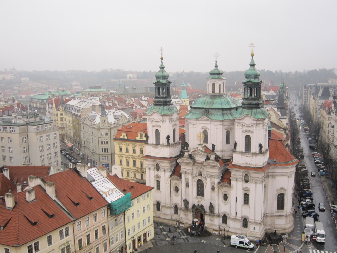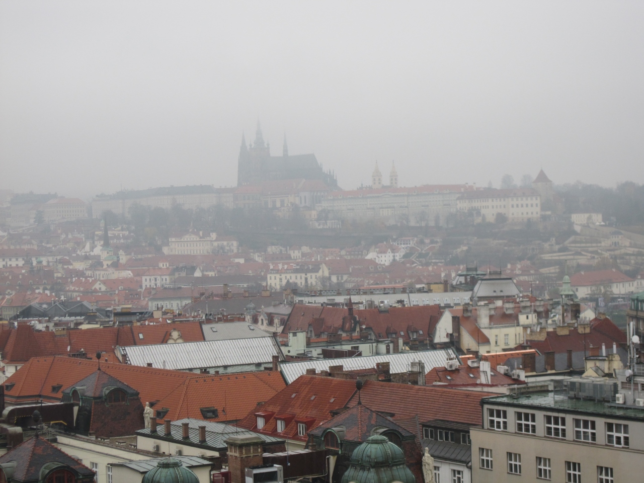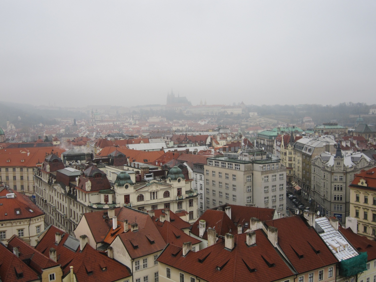 時計塔は登ることが出来、そこから眺めるプラハ市街はとても美しいです。また、プラハ城も見えます。小雨日和だったので、プラハ城がうっすらと霞んでいて、神秘的でした。