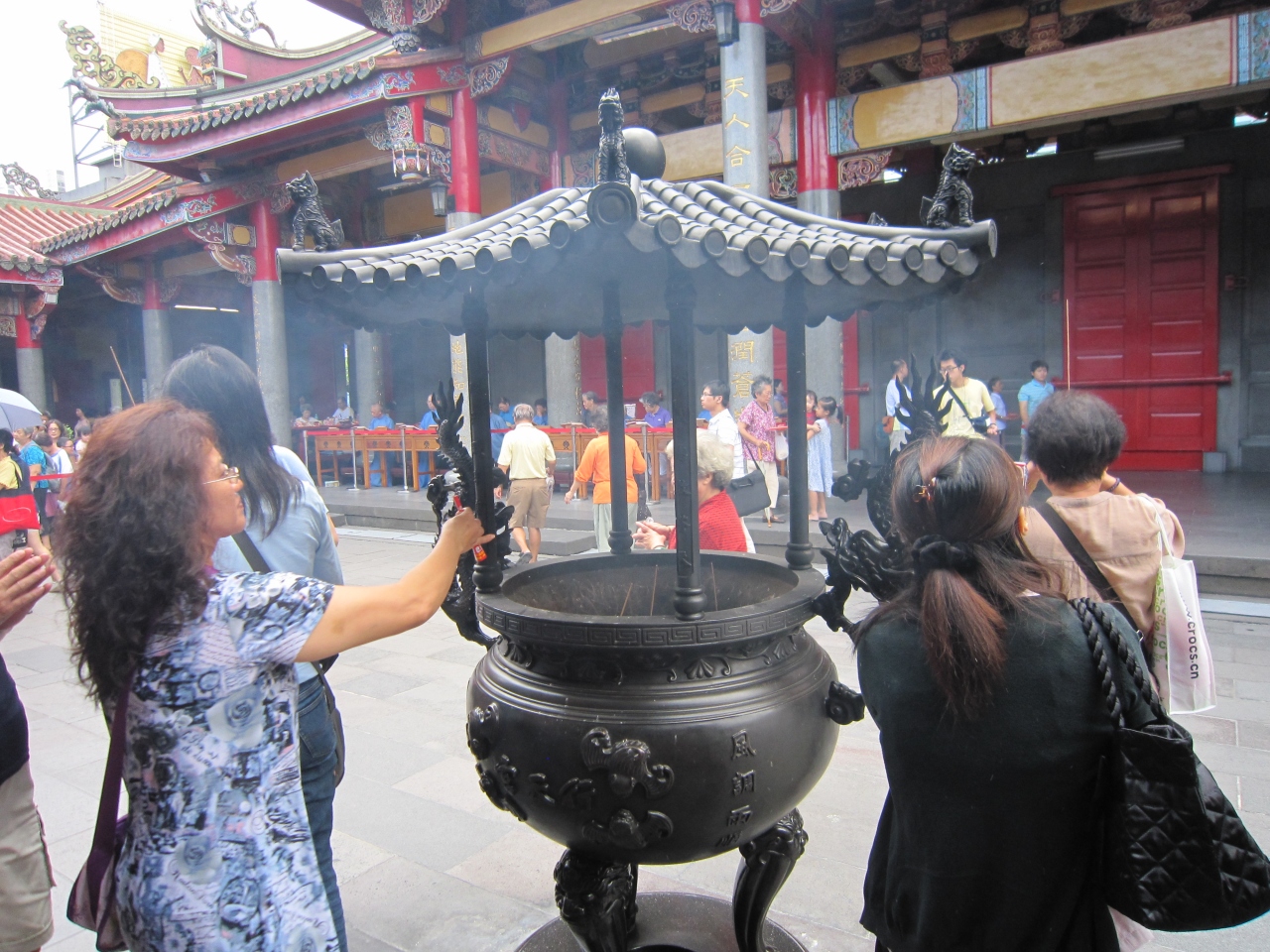 中では、青い服を着た方々が、お祓い(?)をしています。無料でやってくれるそうです。行天宮独特の風景ではないかと思います。- 旅行時期