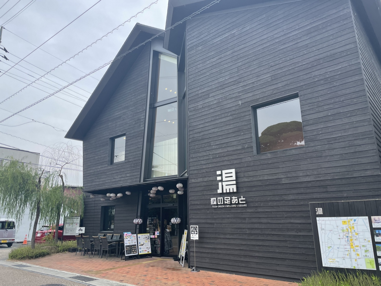 山口県への旅行の際に立ち寄りました。宿泊した湯田温泉のホテルからレンタル自転車で向かいました。湯の町通り沿いにあります。中原中也記念館の目の前です。黒い色をしたおしゃれな雰囲気のある建物です。湯田温泉の情報を得られますし、有料ですが足湯もあります。
