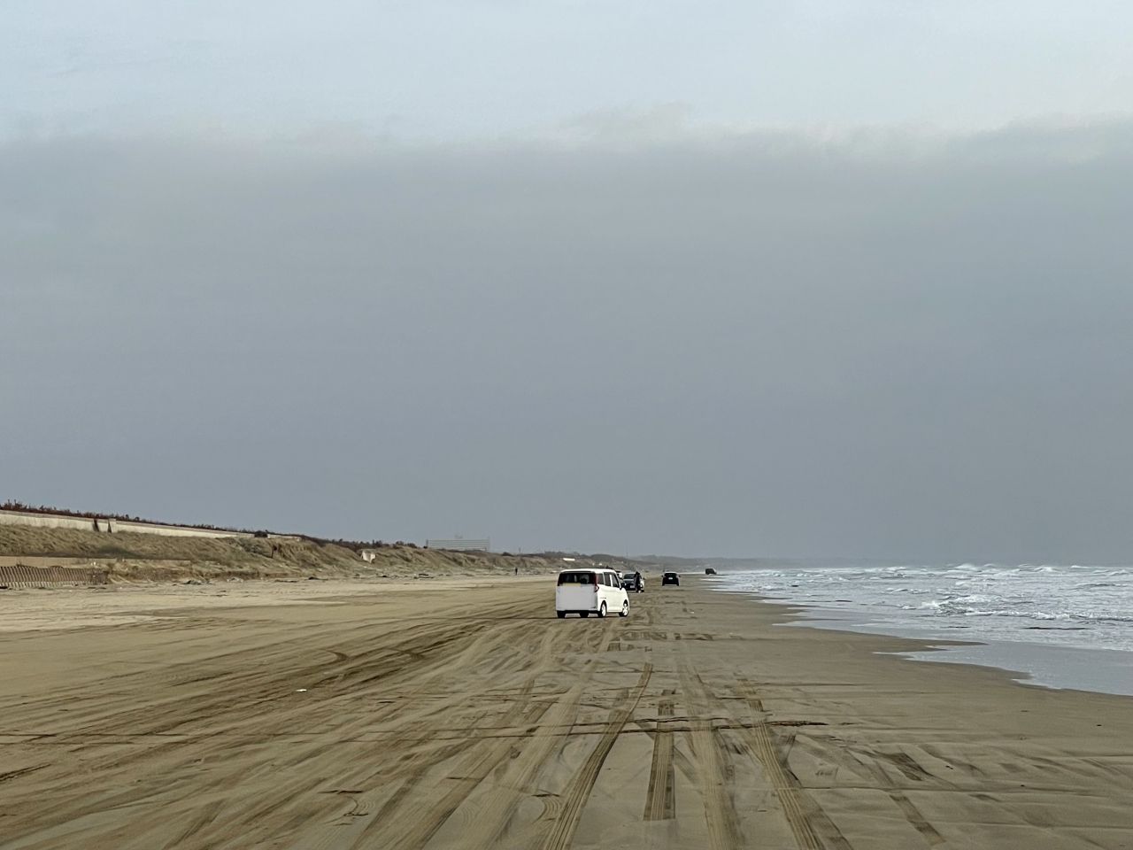 レンタカーで氷見から羽咋市へ行き、金沢方面へ向かう際に通りました。海沿いの砂浜がドライブウェイになっていて、全長約8キロメートルあります。波打ち際を車で走ることができて感動しました。海に夕日が沈んでいく光景も素晴らしかったです。