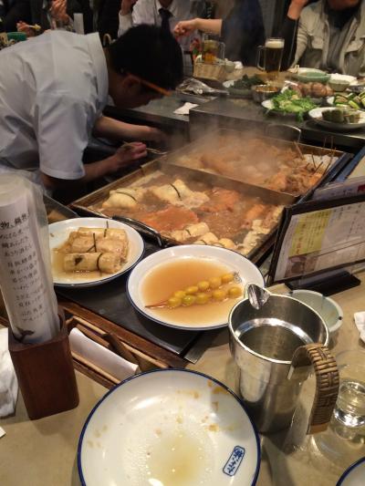 JR大阪駅ガード下にある「新梅田食道街」の関東煮(おでん)のお店です。本店は道頓堀にあるそうです。客席はほぼカウンターです。関東とは違う味付けのおでんはとても美味しくて日本酒が進みました。聖護院大根や鯨すじを初めて食べましたが、とても美味しかったのでお薦めです。たこの甘露煮も名物のようで美味しかったです。クレジットカードを使えます。