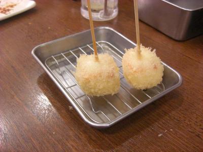 大阪市営地下鉄の御堂筋線「動物園前」駅から徒歩で5分程度です。じゃんじゃん商店街を向けたあたりにあります。チェーン店のようで付近に何軒かあります。カウンターが中心で2人用のテーブル席が3つあります。串カツはとても美味しく何本食べてももたれた感じがしません。アイスクリームの串カツがお薦めです。