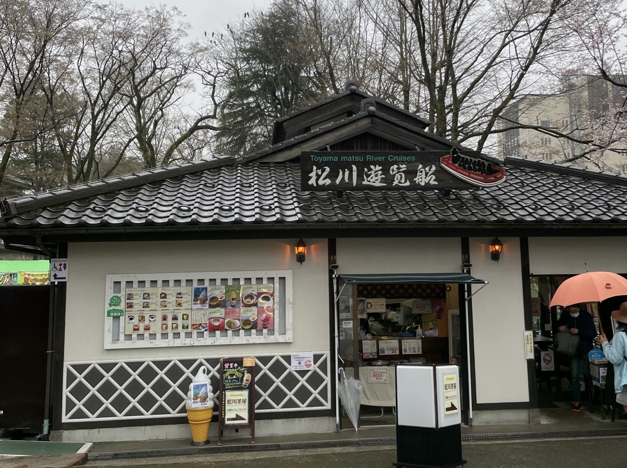 富山県への旅行の際に訪れました。富山城址公園の中にある松川茶屋が発着場になっています。階段を下りて川沿いに出て乗船します。あいにくの天候でしたが、桜が満開で川と桜が一体となった光景は本当に美しかったです。