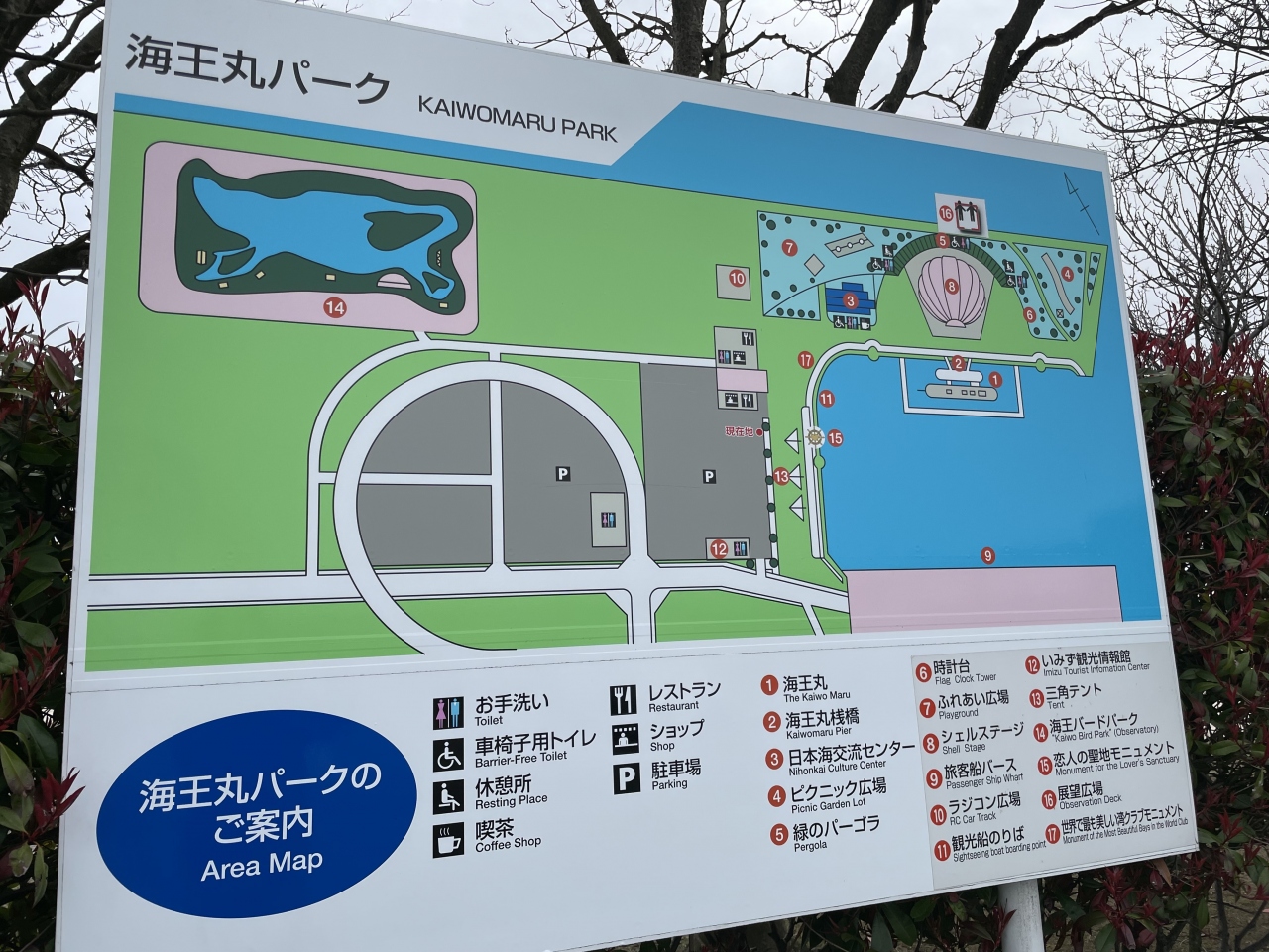 富山県への旅行の際に訪れました。宿泊した富山駅前のホテルからレンタカーで向かいました。富山新港の入り口に架かる新湊大橋を渡った先に大きな駐車場があります。とても広々とした公園で、園内には帆船の海王丸が接岸されています。観光船の発着場所もあります。