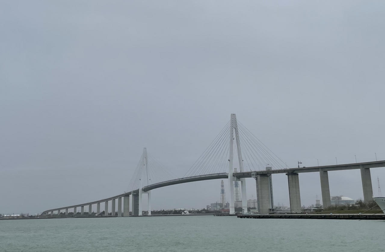 富山県への旅行の際に訪れました。宿泊した富山駅前からレンタカーで向かいました。富山新港に架かる美しい斜張橋です。2層構造になっていて上が車道、下は歩いて渡ることができます。晴れた日には立山連峰の光景を楽しめるようですが、残念ながら曇っていました。