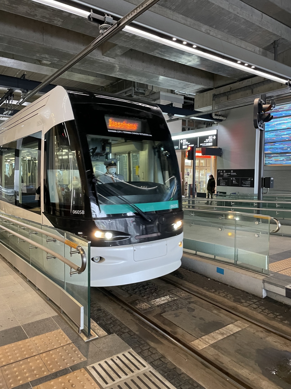 富山県への旅行の際に乗車しました。富山駅から岩瀬浜までの往復と富山市内観光で利用しました。富山駅では新幹線やあいの風とやま鉄道のホームが2階部分にあり、交差する形で1階から乗車できて便利です。街中では路面電車ですが、岩瀬浜へ向かう途中から道路ではなくなります。