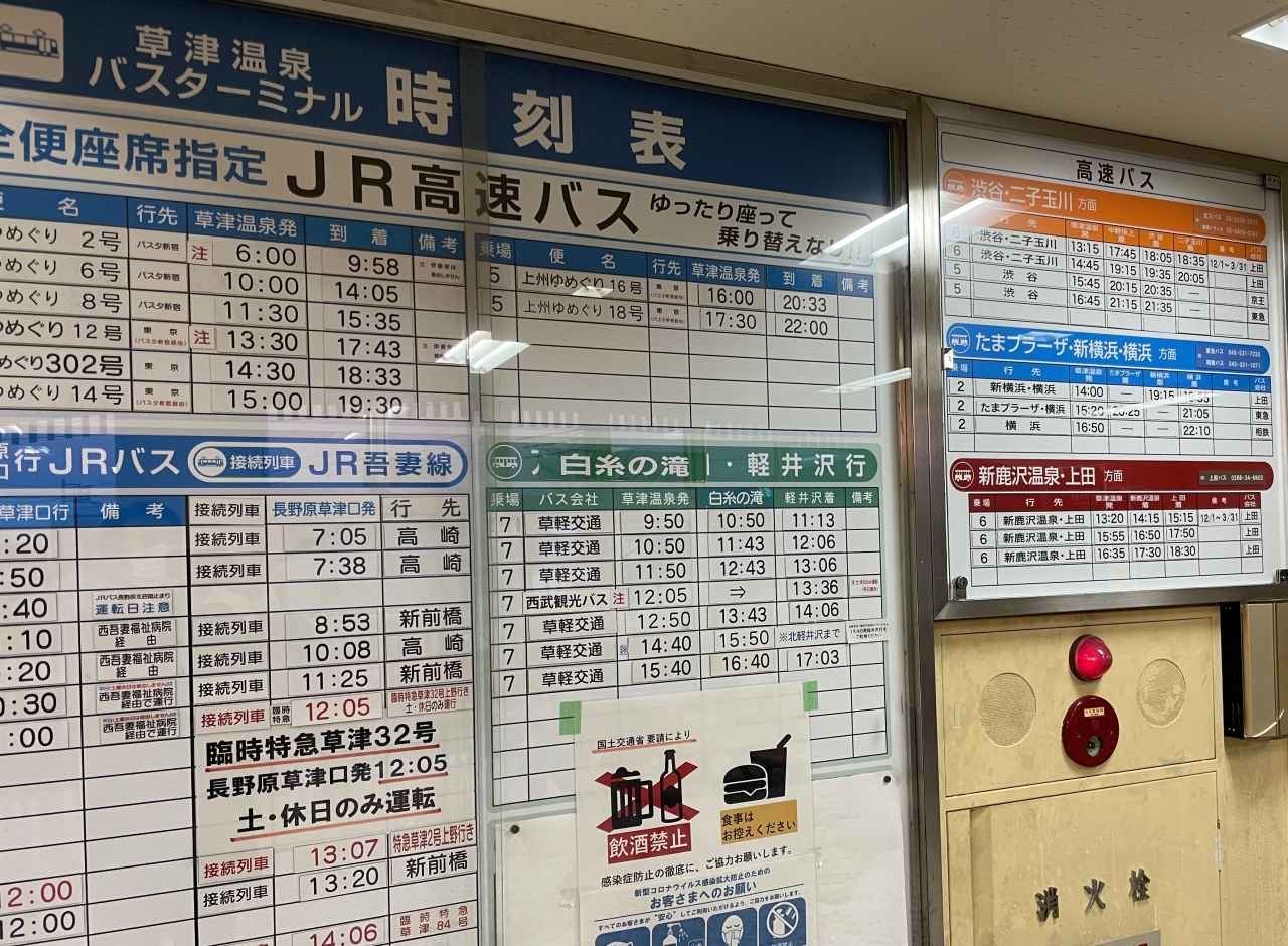 草津温泉への旅行の際に利用しました。高速バスが発着しました。ビルには待合のベンチや観光案内所、お土産店などがあります。トイレやコインロッカーなどの施設も充実しています。エスカレーターがあるので移動も便利です。湯畑までは歩いて5分程度です。