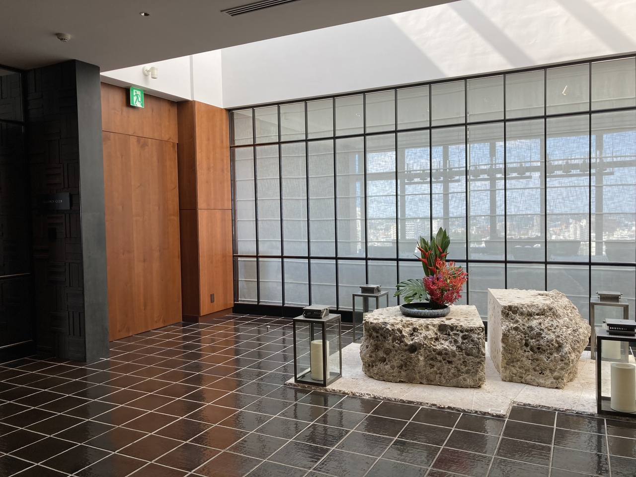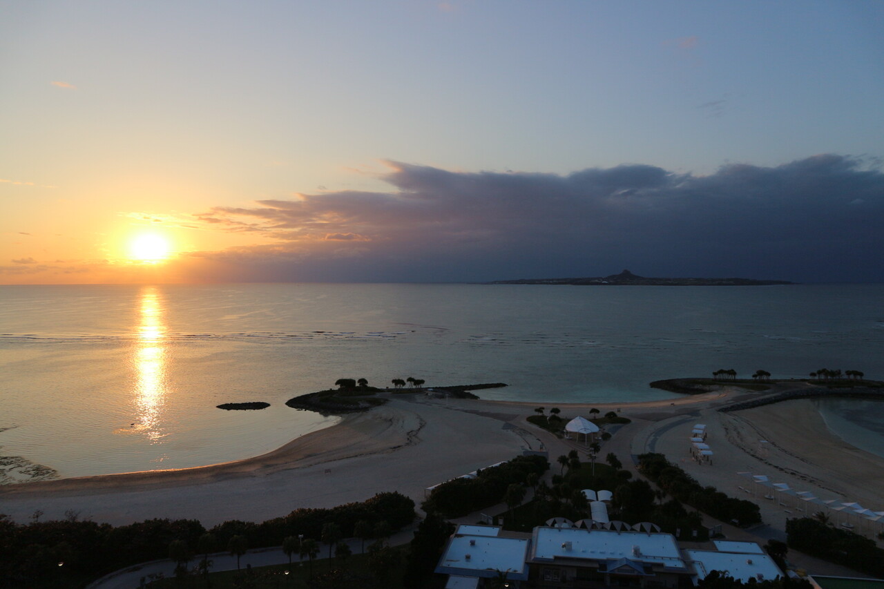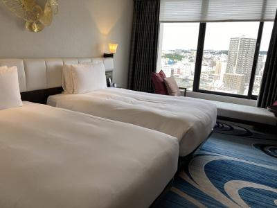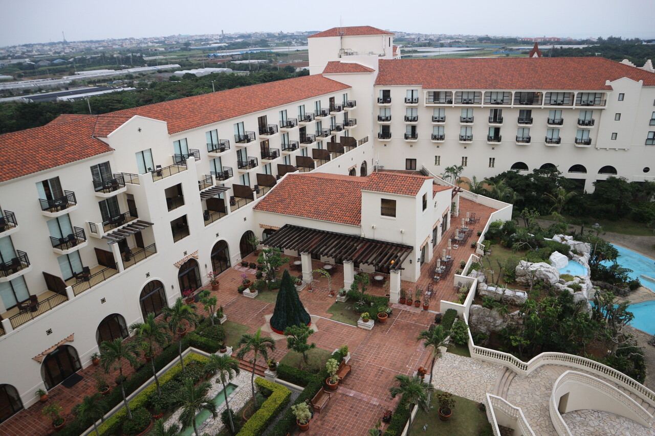 那覇空港から車で約20分のリゾートホテルです。プールもビーチも利用できてオーシャンビューで夕陽や飛行機の着陸も楽しめます。今回はプレミアムラウンジ付きのフロアでゆったりと過ごせました。ティータイムのパンケーキにカクテルタイムの冷製オードブルが良かったです。ここのラウンジの営業中はビール、泡盛はいつでもいただけます。