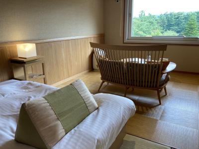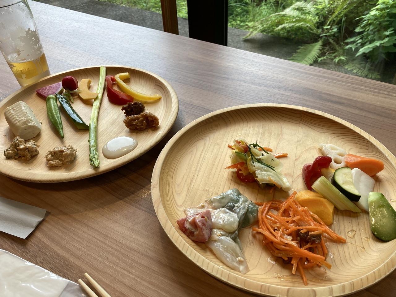 オールインクルーシブで温泉をたっぷり楽しめます。森の中にあるので緑もきれいで目にも優しく、館内や部屋も木をたくさん使っています。ラウンジで湯上りビールやジェラートもあり外の焚火ではマシュマロを焼いてスモアも作れました。食事は野菜がたくさん使われて、新鮮でどれも美味しいです。平日はシニアのご夫婦やシニアの女性グループはリピーターさんなんだろと思います。若い女子旅やカップルさんにも人気なようです。