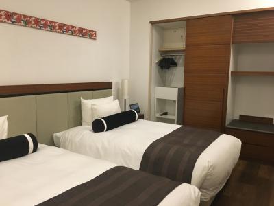 北谷町アメリカンヴィレッジに隣接しており、ビーチ、グルメ、ショッピングに便利なホテルです。ホテル1階の駐車場はかなり数が少なく満車の場合は近くの無料駐車場があります。マンションタイプで客室は玄関がありバストイレは別、キッチンもあります。自宅のようにのんびり過ごせました。
