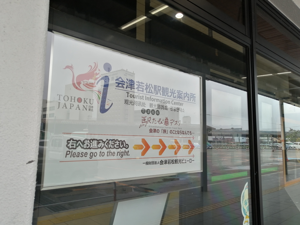 会津若松駅の改札を出て、左側に進むとみどりの窓口の奥側にあります。駅の中にも案内の看板があるので、気をつけてみていれば迷うことはないと思います。ガイドブックは購入していたのですが、細かい町の地図が欲しかったので立ち寄りました。