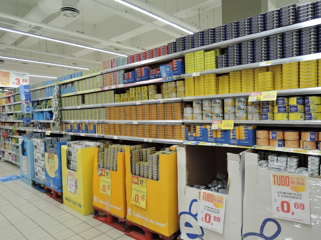 かなり広いショッピングセンターです。近くにスタジアムがあるので、私が行ったときはたまたま試合があったのか、赤いユニフォームを来た人たちが多くいました。目的はスーパーに行くことだったのですが、商品はかなり多かったです。ただバカリャウの缶詰めは一種類しかありませんでした。