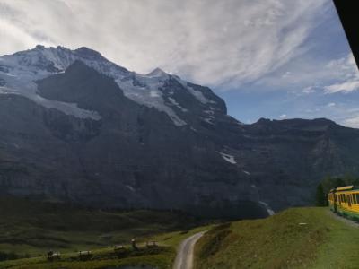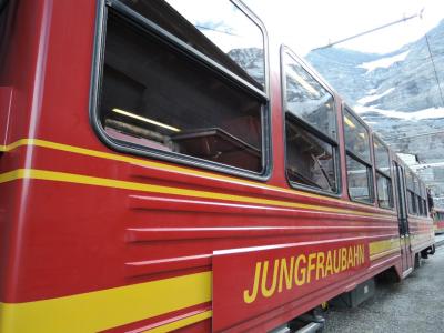 クライネ・シャイデックからユングフラウヨッホまで乗りました。とてもゴージャスな外装の車両が素敵でした。すでに車両が止まっていたので、前方の車両にはお客さんが乗っていたためか、駅員さんたちが後方の車両に乗るように案内していました。席は空いていたので、後方車両まで行くのが面倒だった私たちが乗ろうとすると、後方に乗るように指示されました。