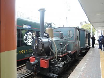 とても有名な坊っちゃん列車ですが、車と並んで車道を走っているのを見て、すごく驚きました。タイミングが合わず乗ることは出来なかったのですが、見ることが出来ただけで結構満足しました。走っていない間は駅に止まっているので、写真を撮ることができました。