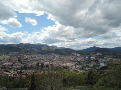 グッゲンハイム美術館から、磯崎ゲートを見てズビズリ橋を渡って5分くらい歩くとフニクラ乗り場があります。これから見る展望を先に見ながら歩けるというルートは、なかなか効率がよくて効果的だと思います。フニクラであがると、ビルバオの景色が一望できます。