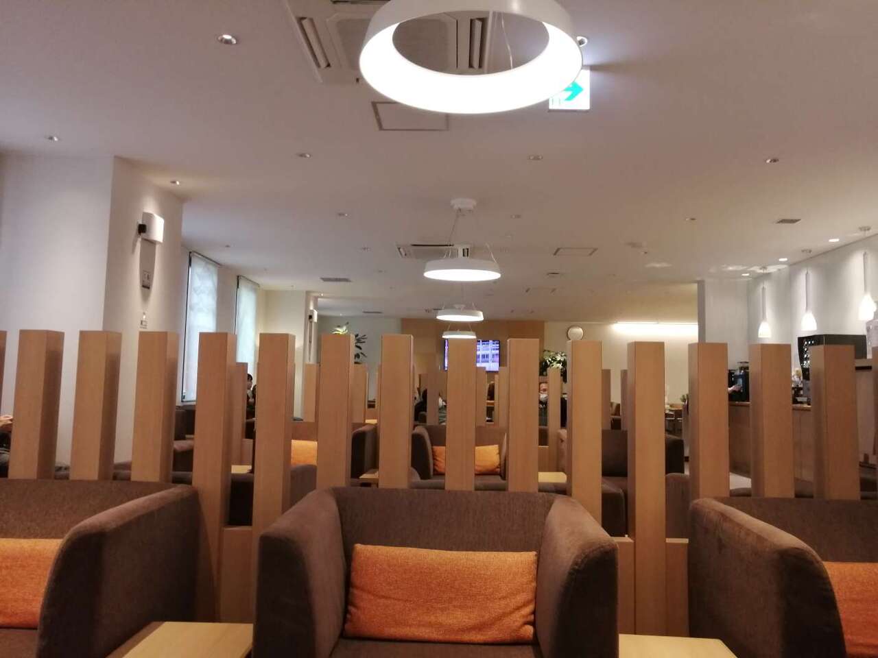 カードラウンジは、コロナ禍以降より一層残念な感じになってきていると実感しているのですが、こちらのラウンジはとてもサービスが良くてびっくりしました。チェックインの際に、おつまみのようなものが2点頂け、私達は飲めないのですが、焼酎が小さなコップ1杯試飲できるのです。コンセントも配備され、居心地の良いラウンジでした。