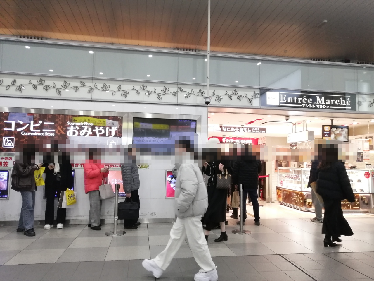 平日の夕方に訪れました。通勤の際によく前を通りかかっているのですが、年末だったせいか、お店の一部にあるりくろーおじさんのチーズケーキに行列ができていてびっくりしました。スタッフさんによると、7分ごとに焼き上がるとの説明だったので、長時間待つことはなかったのでほっとしました。