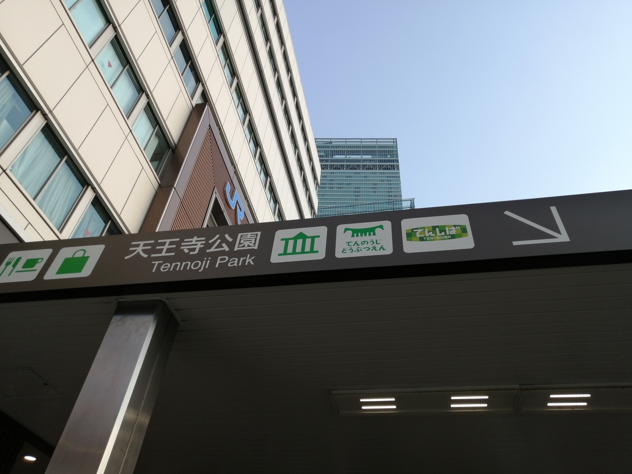 天王寺駅から大きな道路を渡ると、かなり大きな天王寺公園が見えます。再開発されたエリアがてんしば、奥には大阪市立美術館と天王寺動物園があり、老若男女みなさん楽しめると思います。ハルカスからもその大きさを見ることができます。
