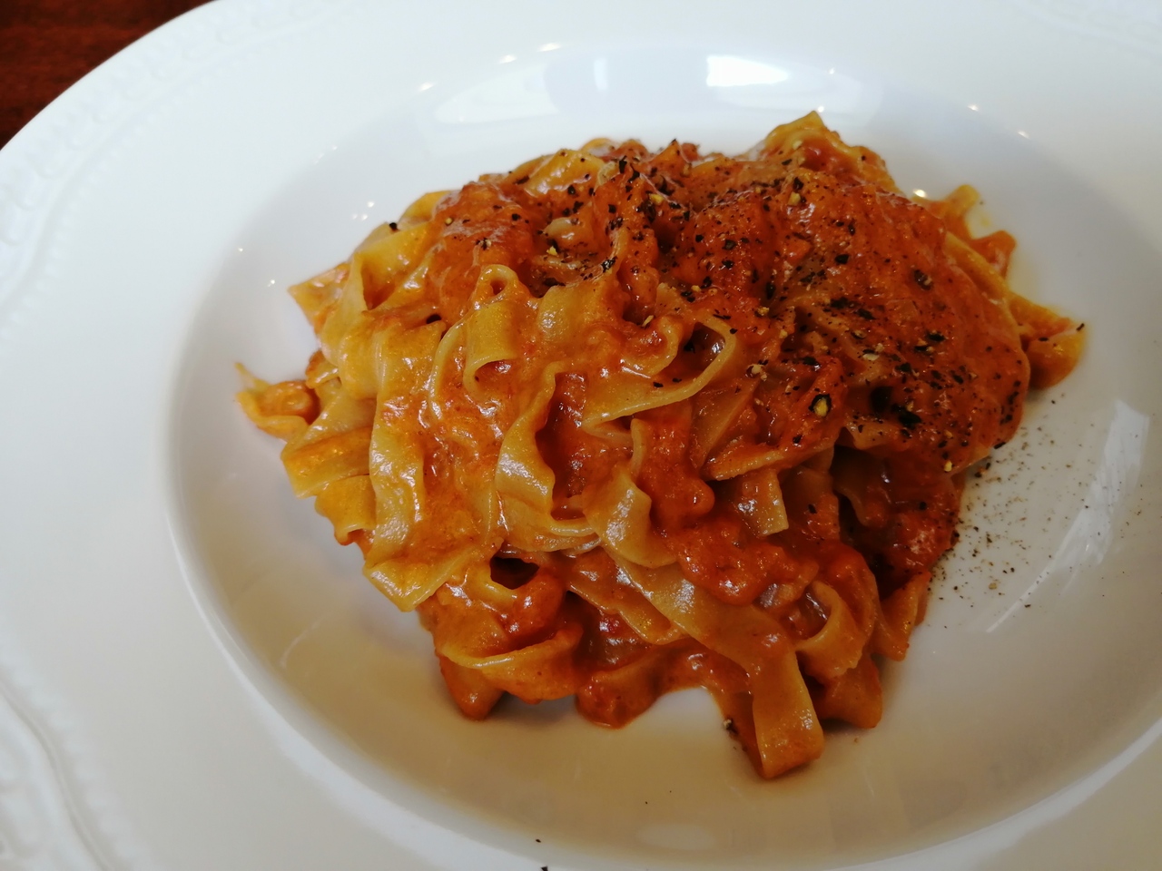 友人のおすすめで、平日のランチタイムに訪れました。友人がすすめてくれたステーキではなく、手打ち麺のパスタのトマトソースをオーダーしました。1200円でサラダとパン(フォカッチャ)が付いてきます。近くにもっとコスパの良いパスタ屋さんがあるので、リピートはないかなーと思います。やっぱりステーキにすればよかったかなと後悔しています。