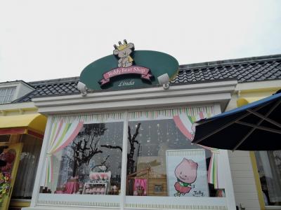 ハウステンボスに入って、最初のアトラクションであるテディベアキングダムを通り抜けると、右手に見える建物がリンダです。お店の外側には、カチューシャみたいな買い求めやすいお土産が並んでいて、入場したてのテンションでついつい財布の紐が緩みます。