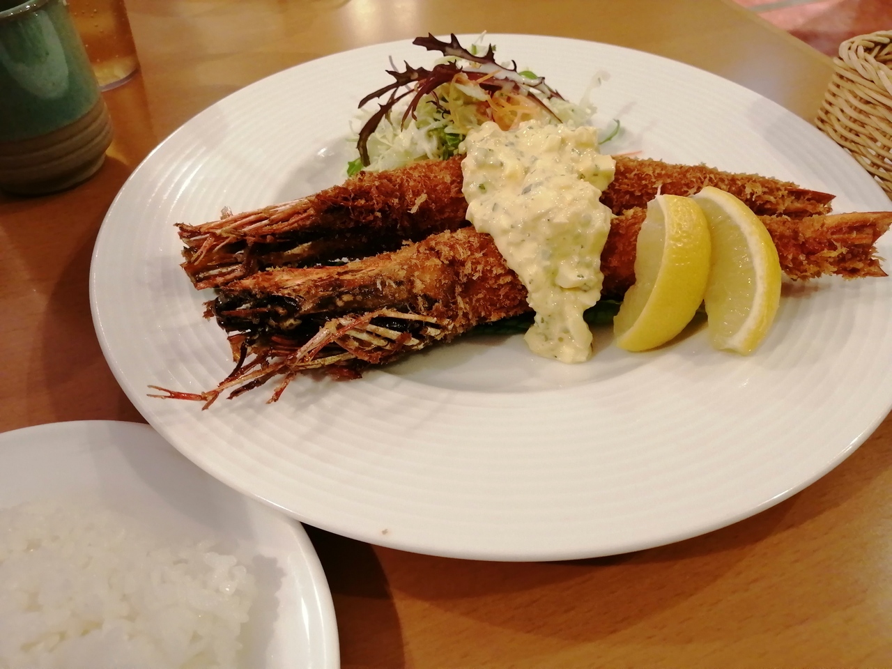 会社のランチタイムに伺いました。11時40分頃でしたが、金曜のせいかたまたまなのか、家族連れや近隣の会社員がそこそこ入っていて、海老フライをオーダーしてしまった私は、メインが出てくるまでに15分近くかかりかなり慌てて食べました。時間がない場合はステーキとか調理の早いメニューにしましょう(笑)