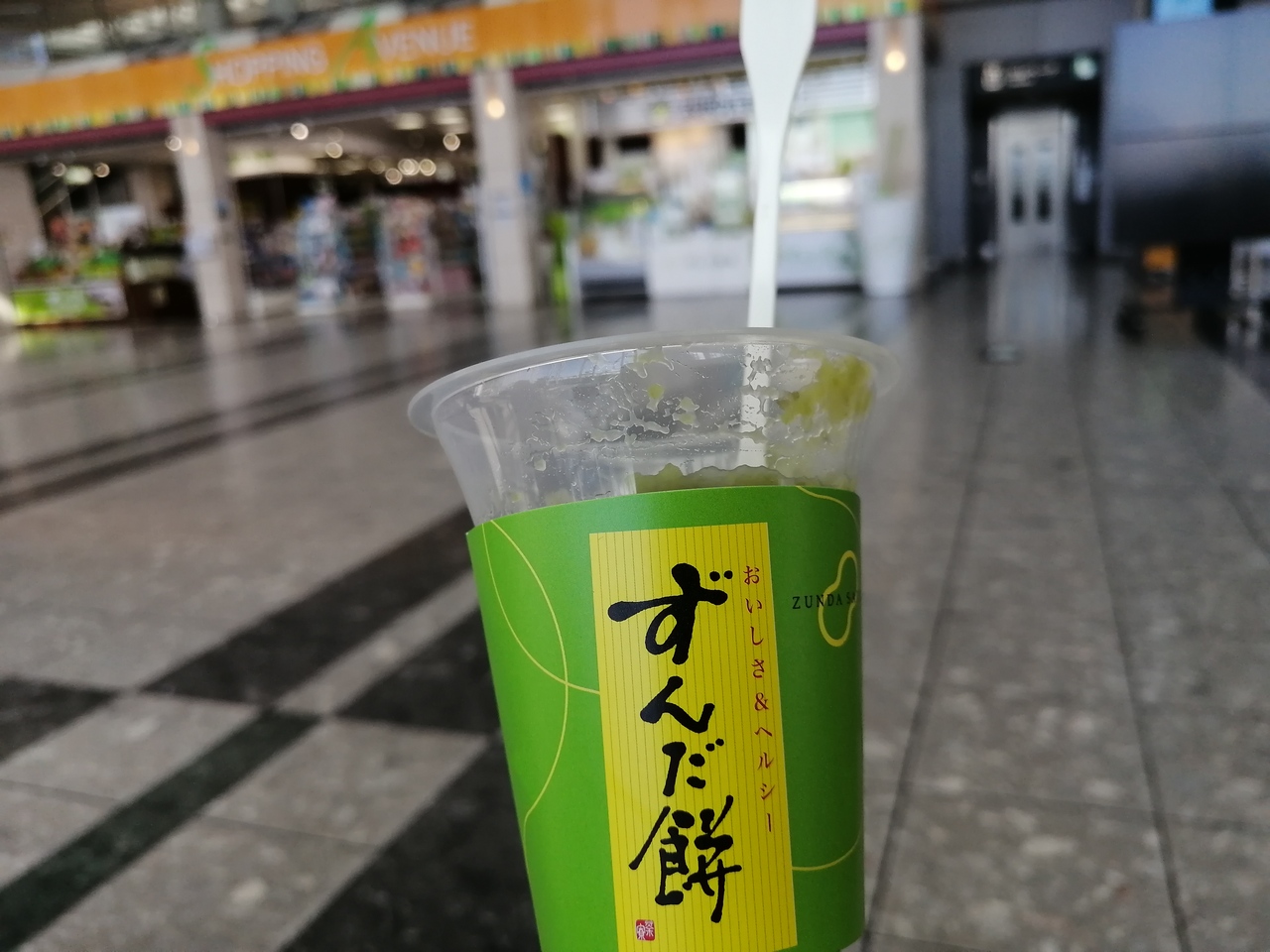 仙台は2度目ですが、空港に着いてすぐに食べてみたくて訪れました。家族連れがずんだシェイクを買っておられましたが、ひとまずぷちずんだを体験しました。お持ちが4つ入っていて、そこそこお腹にたまります。