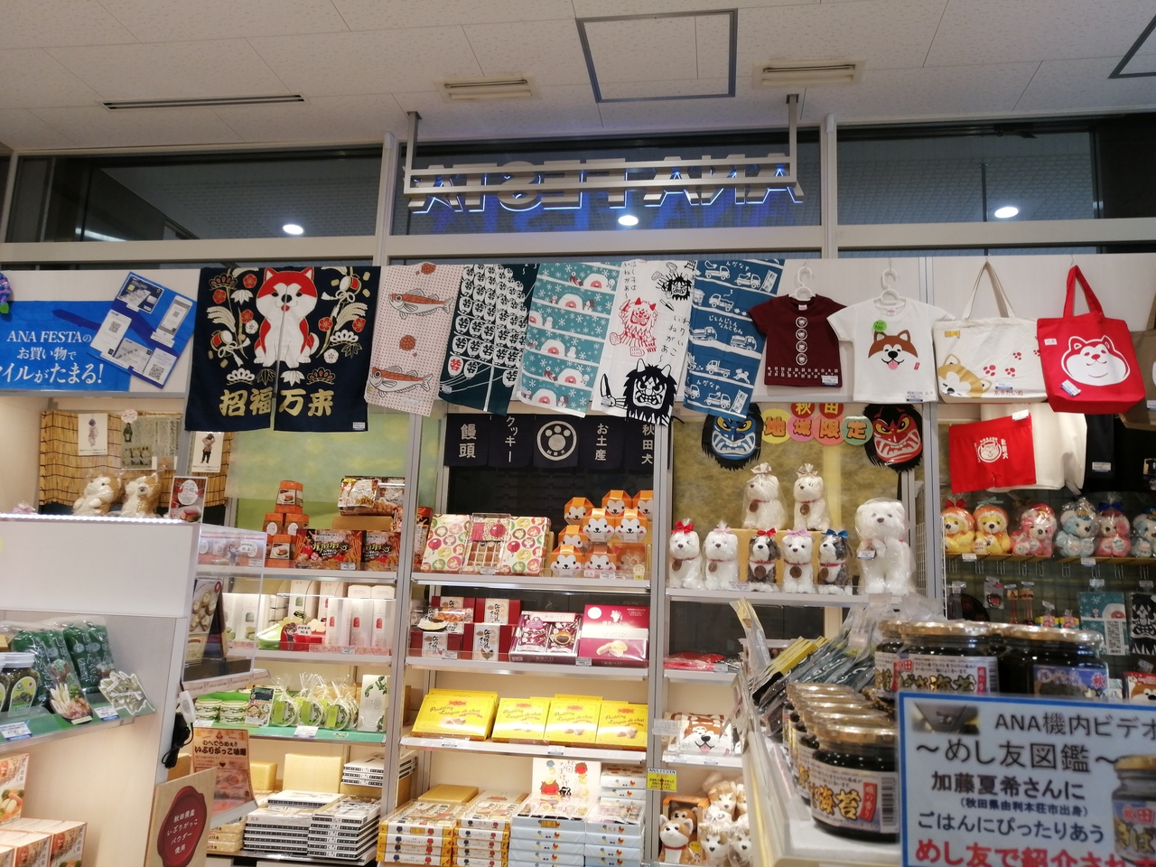 秋田空港2階の出発ロビーにあり、かなりの面積を占めています。食料品から地酒、グッズや工芸品、冷蔵物等多種多様なお土産が揃っているので、お土産を買うのに時間が取れずに空港まで来てしまった方には、とても便利だと思います。