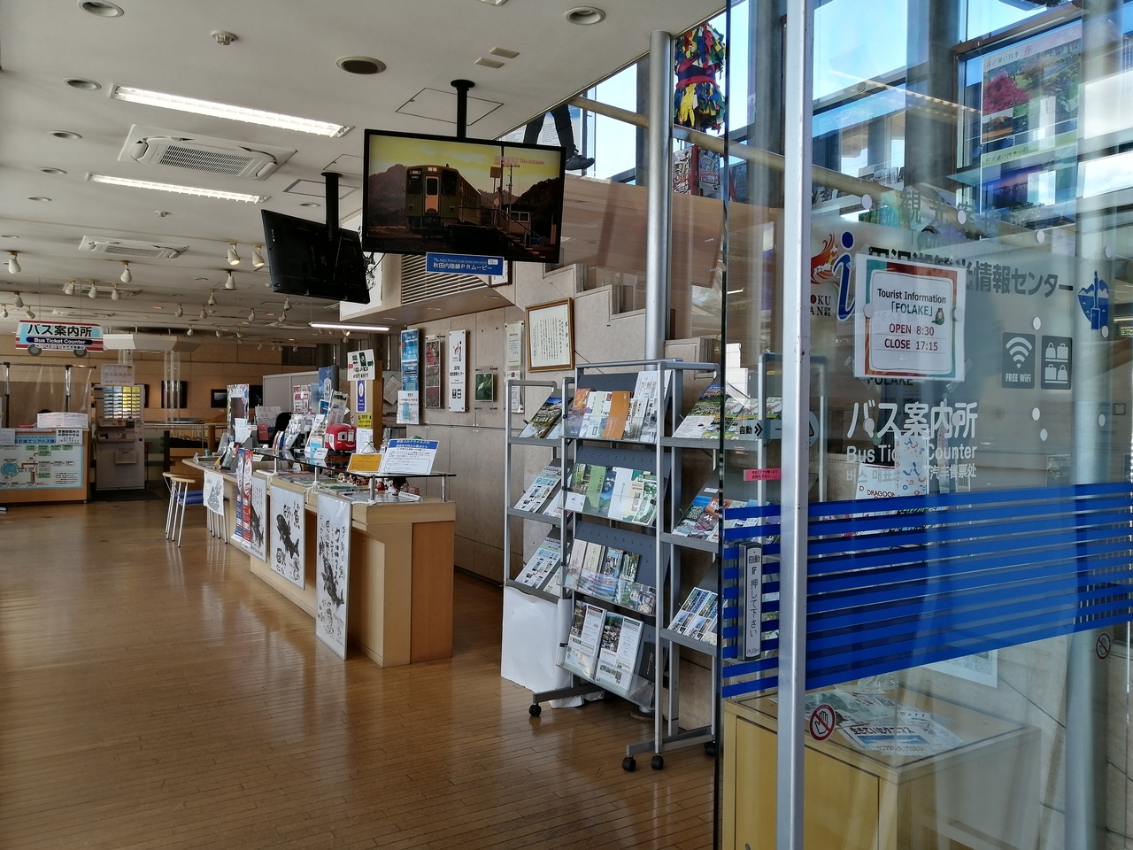改札を出てすぐ右手にあります。荷物預かりを一つ500円でしてくれます。秋田出身の高橋優さんのサインもありました。スタッフの皆さんも優しく、帰りにはポストカードを頂きました。隣にはバスのチケット売り場があります。