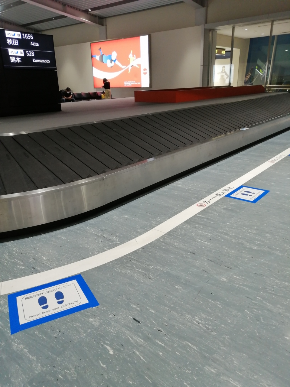 自粛が緩和されたので、久々飛行機に乗り旅行しました。一部まだ工事が完了していませんでしたが、手荷物検査の数が増えたので、待ち時間はかなり減りました。いつも伊丹空港からはバスを利用して帰宅するのですが、足元にテープもないのに、みなさん自主的に前後を空けて並んでいました。このように各自が気をつけながら、旅ができるといいなと思いました。