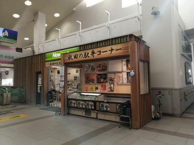 秋田駅の改札横にあります、駅弁等のお弁当類は外に並べてあります。朝8時頃でしたが、ガッツリ系のお弁当ばかりでした。せっかくの秋田なのて、おにぎりと少しのおかず程度のお弁当があればいいなと思いました。簡単なお土産も扱っています。