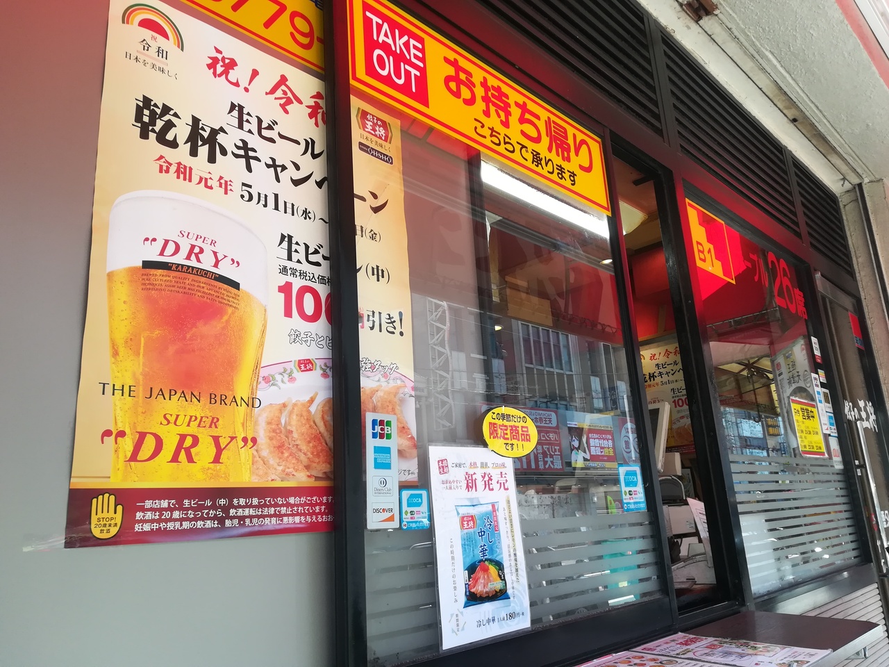 いくつかの王将の餃子を比べてみましたが、こちらの餃子は美味しいと感じます。テイクアウトの方が多いですが、家で焼いても美味しいです。ICOCA等も使えます。最近バイトさんがエスニックな人になりましたが、問題ありません。