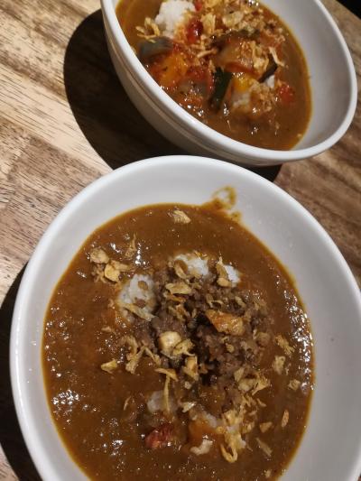 二階なので見落としがちですが、コスパ良く居心地のいいお店です。簡単なメニューは300円程度、前菜なら600円程度、人気メニューのカレーは900円から1000円(一部ハーフも可)。アルコールも600円程度でした。ソファ席、カウンター席、ダイニングテーブル席、色々とあります。ミュージシャンのサインもあります。