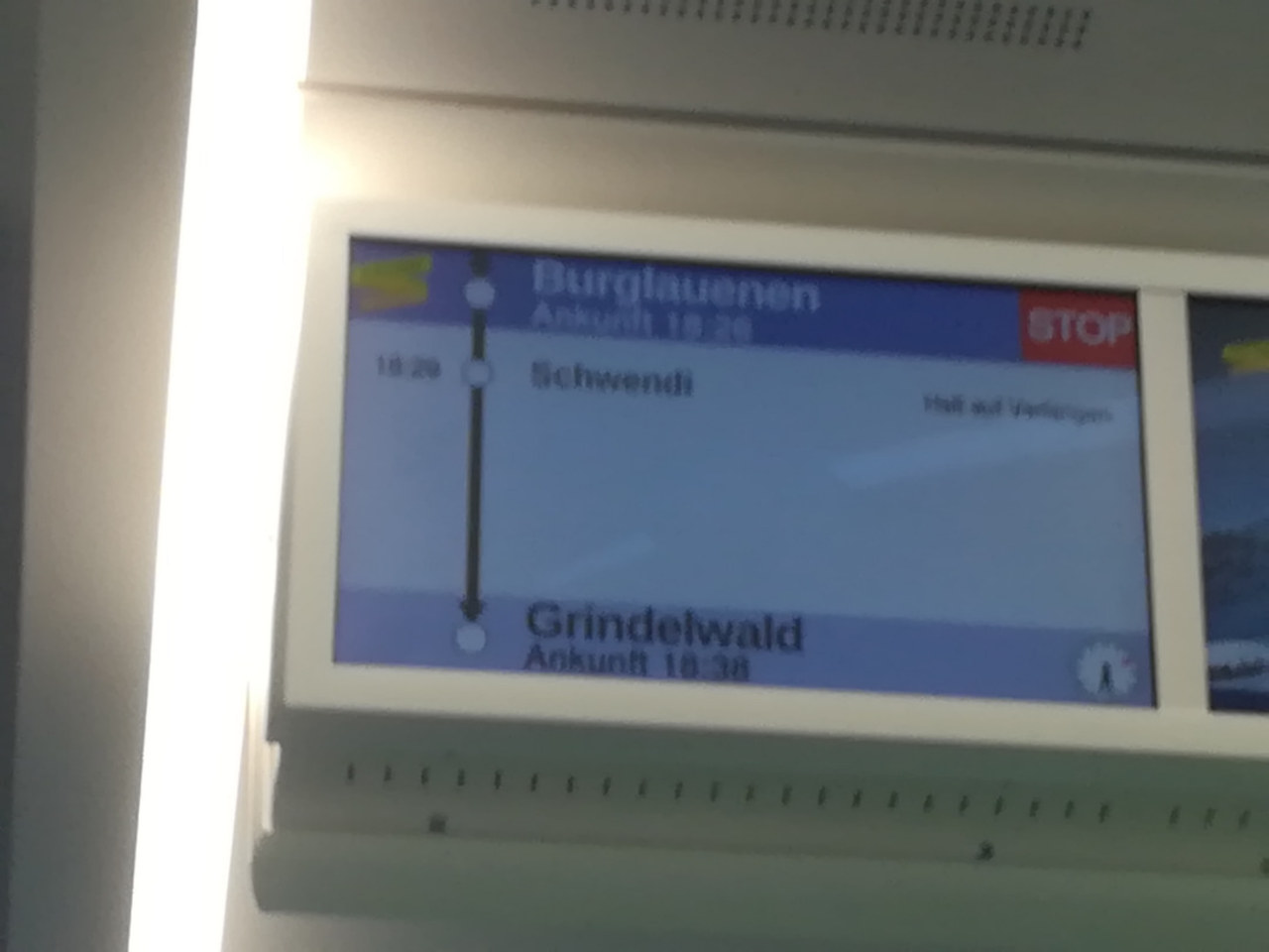 グリンデルワルトに宿泊していたので、インターラーケンオストからグリンデルワルトまで何度も乗りました。車内には駅名が出ているので、降りる場所を間違うことはなかったです。電車の前と後ろは切り離されるので注意が必要なのですが、アプリではホームの表示にAやBがあり(AやBはホームの前方か後方かを表す)迷うことはありませんでした。旅行者に優しい電車です。