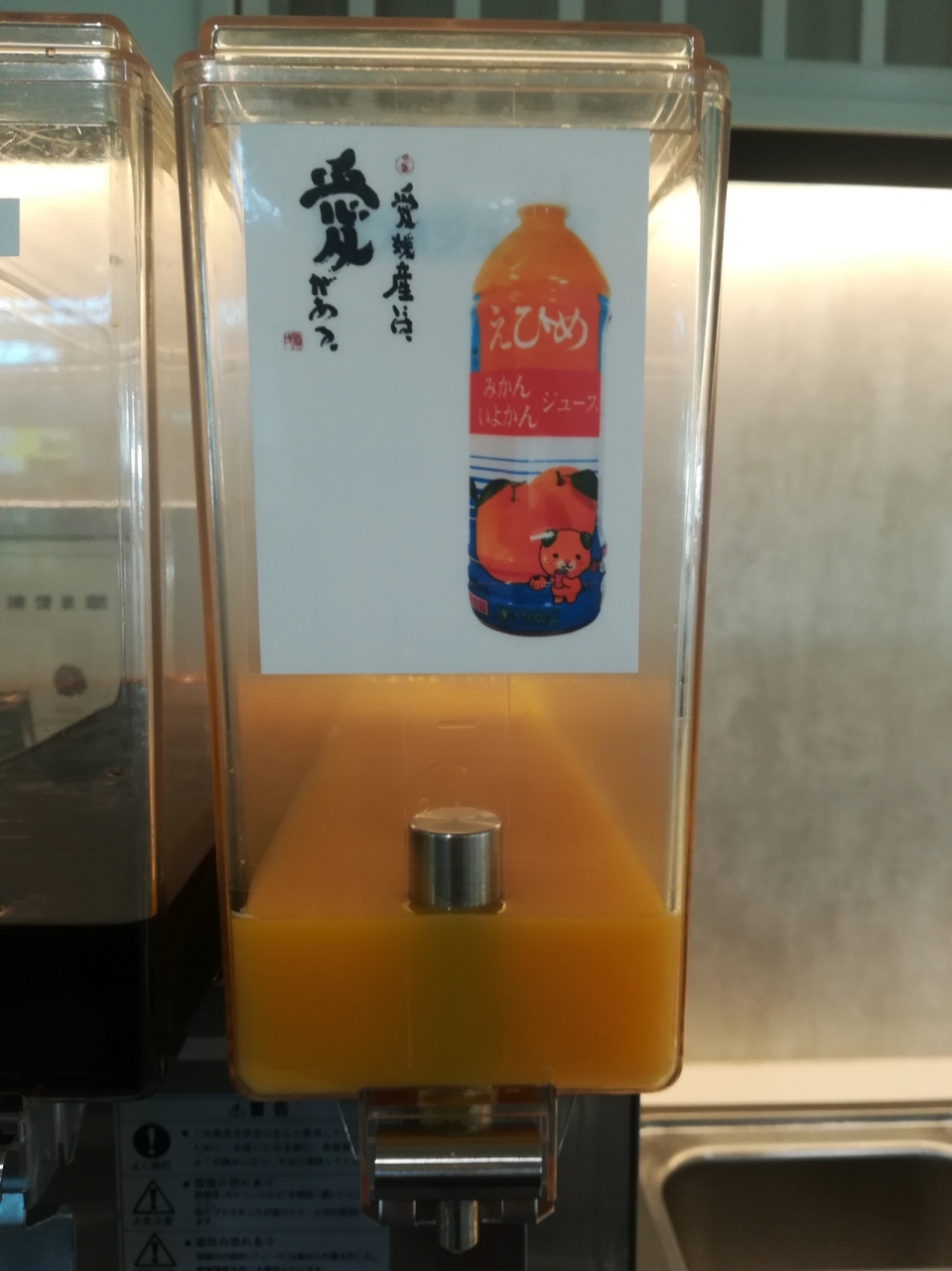 松山空港は比較的小さな空港ですが、ラウンジは多めです。口コミでポンジュースがあるとのことだったのですが、私が訪問した時はポンジュースはなかったです。ちょっと残念でしたが、よく似た柑橘系のジュースはありました。