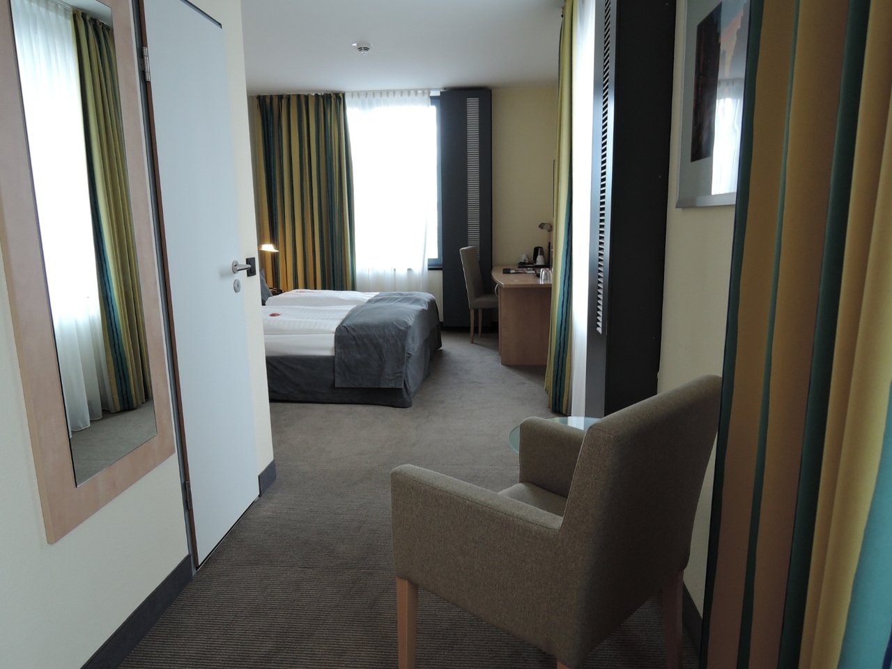中央駅から近いホテルということで選びました。チボリビューのジュニアスイートにしたのですが、二階の部屋でした。運悪くちょうど向かいの建物が工事中で、お互いに丸見えでした。チボリもあまり見えませんでした。長い棒でしか開閉できない上の方の窓が開けっ放しになっており、気付いたのが夜中だっまのでかなり寒い思いをしました。色々と運が悪かったとは思いますが、残念でした。