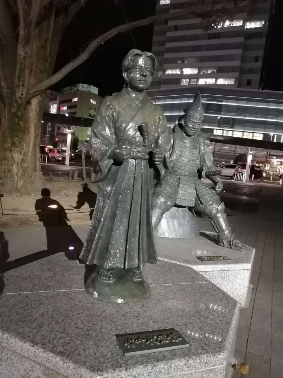 表情がとてもイキイキしていて、かわいらしい像で、弥次さん喜多さんが楽しく旅をしていたんだなぁと想像を膨らませてくれます。駿府城公園の坤櫓のすぐ近くなので、静岡駅から歩いてこられる場合はすぐ見つかると思います。