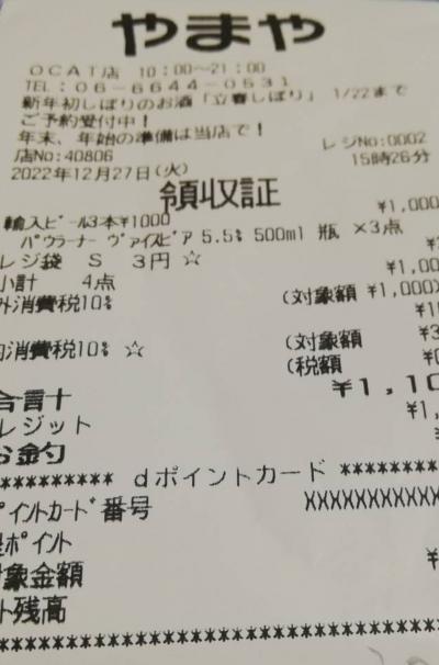 久々難波にランチをしにきました。JR利用なので、帰りにやまやに立ち寄りました。一階に移動して、店舗面積が小さかったのですが、それが大きくなっていてアルコールの取り扱い量が多くなっていて嬉しかったです。大好きなドイツビールを購入しました!