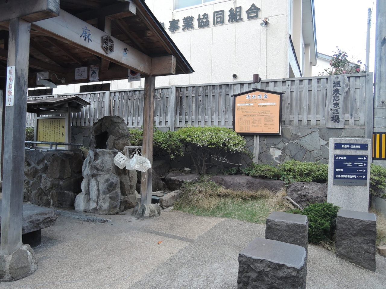 全国各地の温泉で、温泉たまごをつくる習わしはありますが、大抵ホテルの中の温泉であったりが多いと思います。こちらは温泉街の足湯の隣に、わざわざ温泉たまごを作るために場所が設けられています。珍しいし、面白いなぁと思いました。